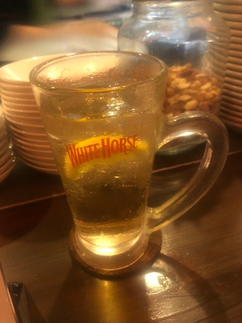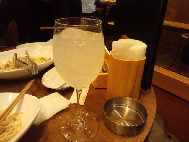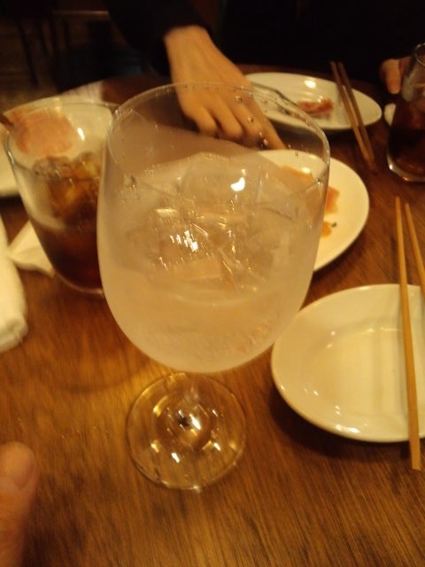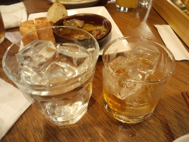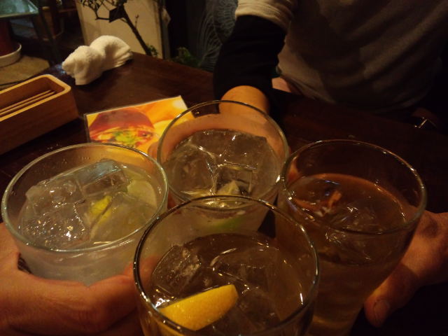 テーブル席に座って二人でハイボール。