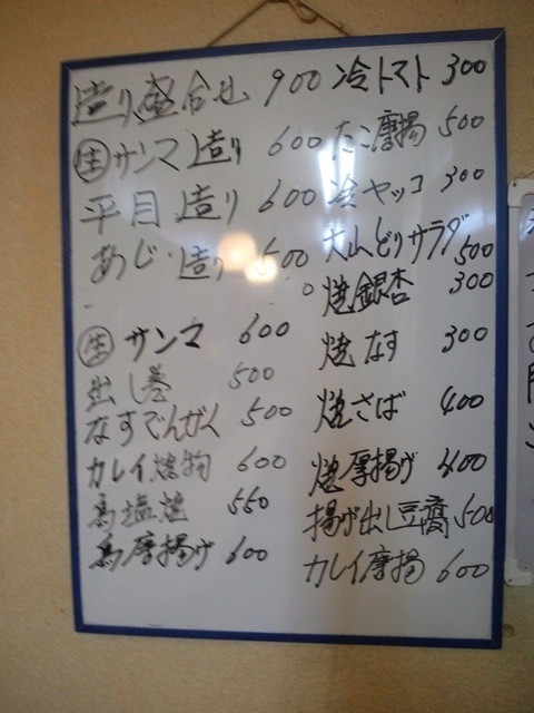 壁のホワイトボードの「生さんま造り」を頼んでみたところ・・・今日は「ない」