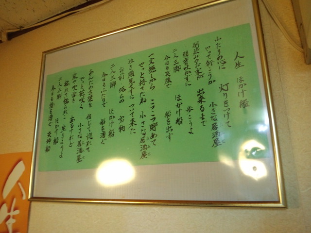 *額に入った「歌詞」(身につまされる良い歌です)が飾ってありましたが「ちいさな居酒屋」のとこを自分の商売に換えて今度唱ってみようかな(笑)