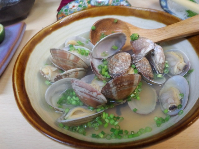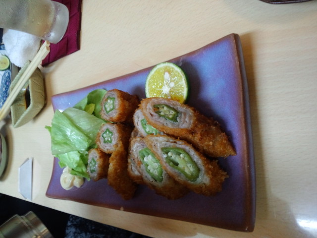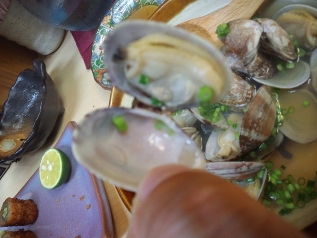 オクラの肉巻き・あさりの酒蒸し・出汁巻きたまご・ぎんなん・ニンニク揚げと出て来ましたがビールや焼酎の(ロックで戴きましたが氷が丸くて中なか溶けないで良い感じ)アテとしてぴったり!美味しく戴きました。