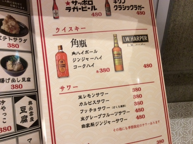 ハイボール¥380とレバかつ¥250を注文。