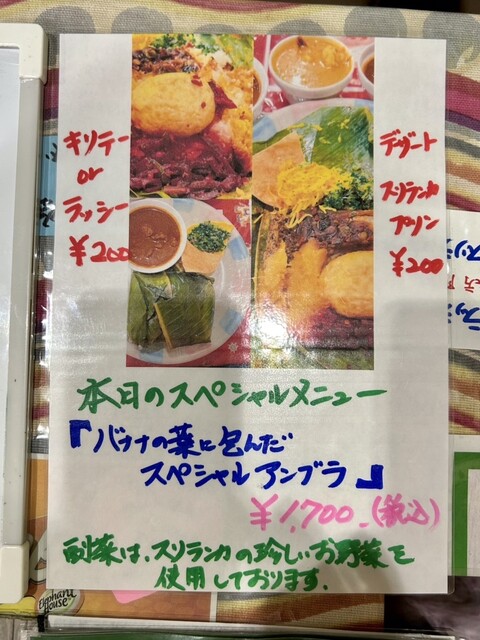 土曜19時頃「アンブラ」(バスマティライス/1500円)を頂きました。