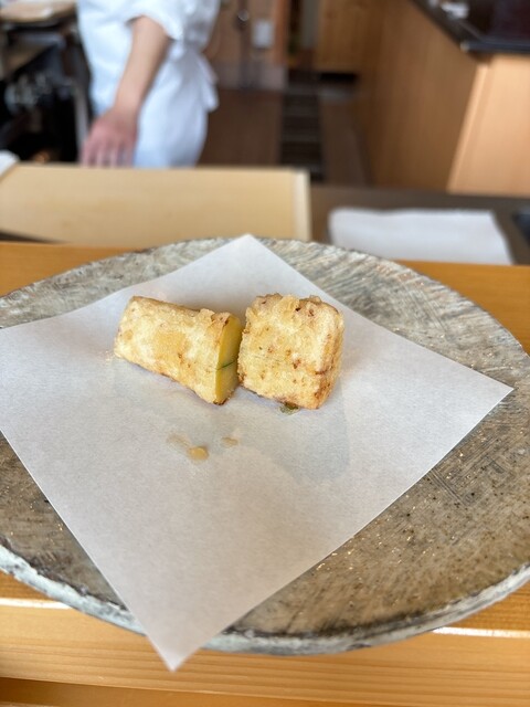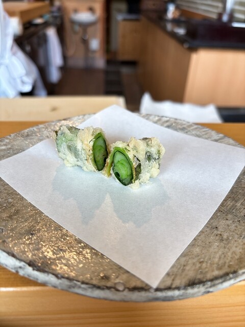 は野菜や海鮮を絶妙な火加減で揚げてくれます。外はサクッと、中はしっとりとした食感が際立ち、香りもふわっと広がる。各天ぷらには【おすすめの薬味】が用意され、一つひとつ丁寧に説明してくれるので、味の変化も楽しめました。