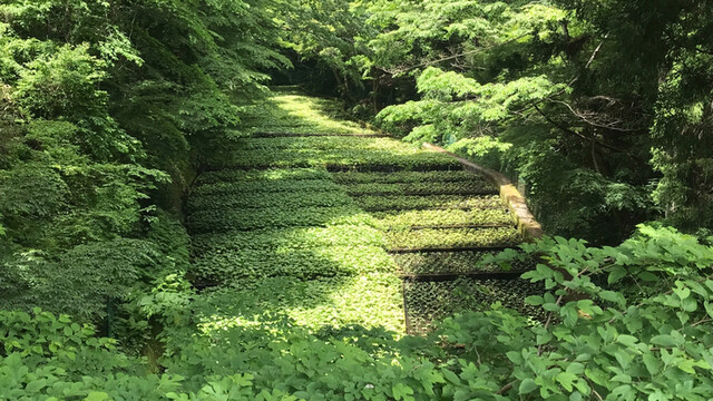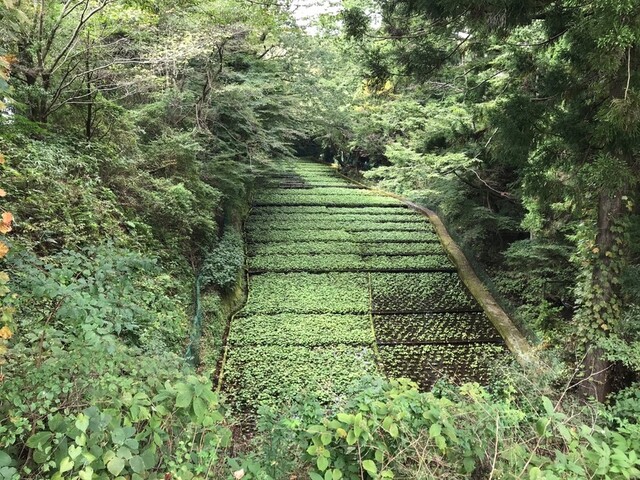 わさび園、奥には富士山
