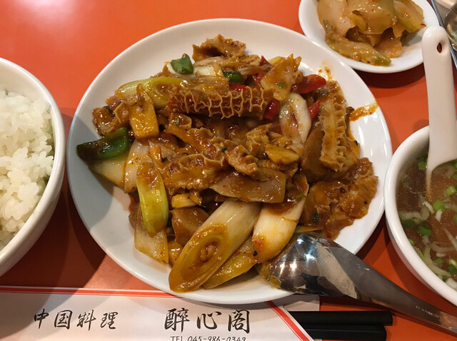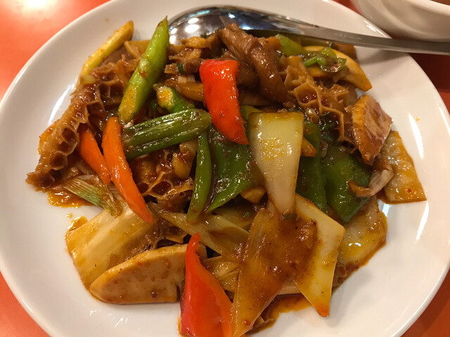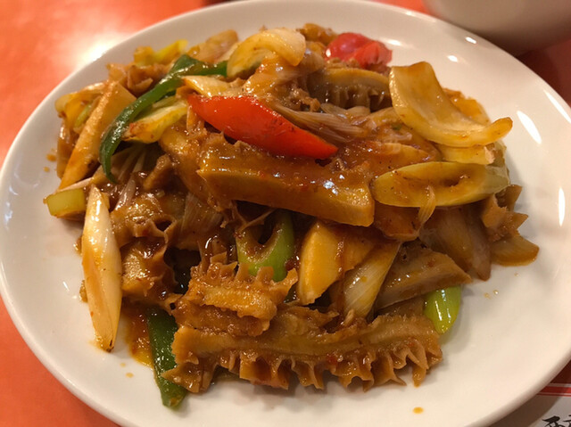 辛炒牛肚(牛胃袋の長葱入り辛子炒め)