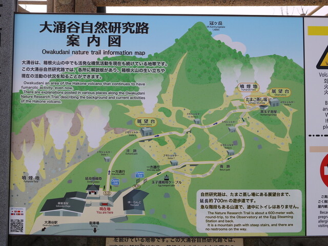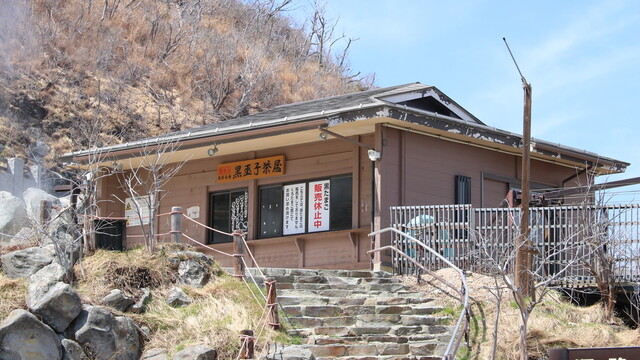 大涌谷自然研究路の奥にある黒玉子茶屋(玉子茶屋)ですが、火山活動の影響により閉鎖されていた大涌谷自然研究路が22年3月28日から予約制の引率入場で再開されたので約8年振りに黒玉子茶屋まで行って来ました。