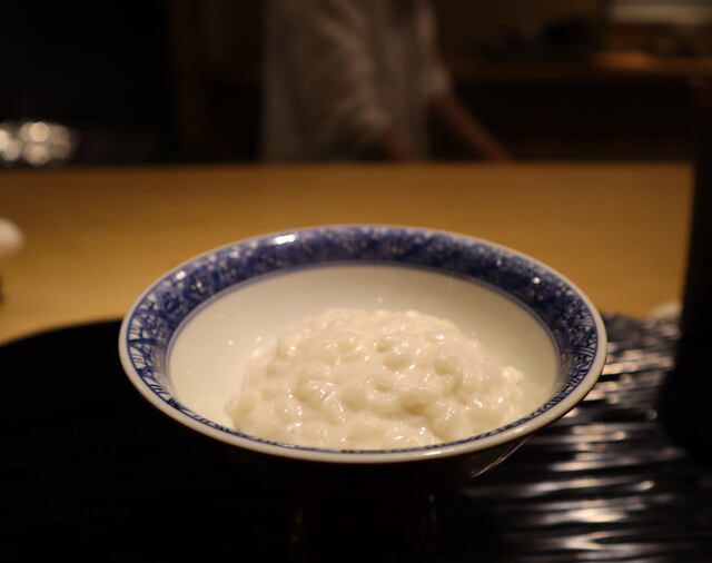 コリコリしたフグのみの入ったおじや お米もアルデンテで食感がすごい