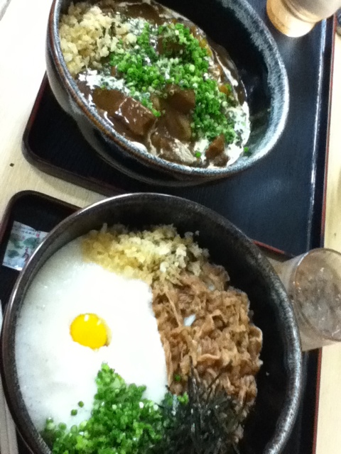 でも待ち時間は意外に短く店内へ、並んでる間に私は肉山かけを,姉はカレーうどんを注文。中を頼んで結構多かったですが、綺麗に完食しました。 ちょっと分けてもらったのですが、カレーめっちゃ美味しかったです!!