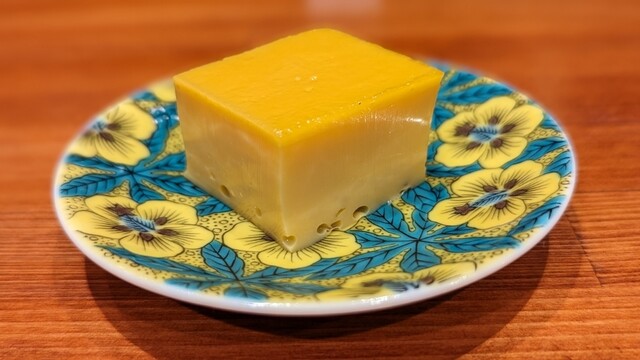 卵焼き。5回も濾して一晩寝かせて、3時間かけて丁寧にていねいに焼いたらしいです。納得の滑らかさ。味わったことがない感触だった。