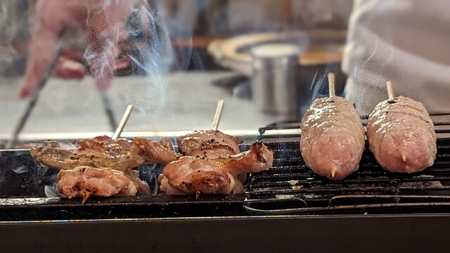 生から焼いたつくね。つなぎは一切なし。塩とブラックペッパーだけでめちゃくちゃ美味しい。肉汁じゅわ〜