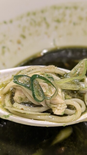 〆は鶏の塩そば 熱々油をじゅ〜っとかけてる