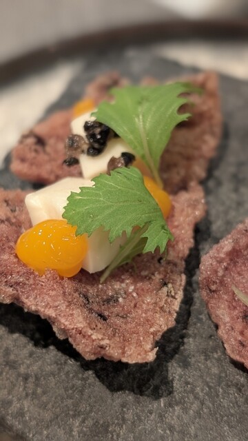 チーズ美味しかった 上にかかってるのは黒こしょうの塩漬け