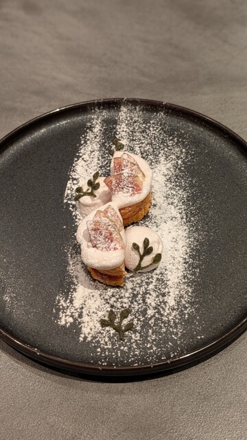 トマトのケーキにイチジク エスプーマの上はバジルのお味