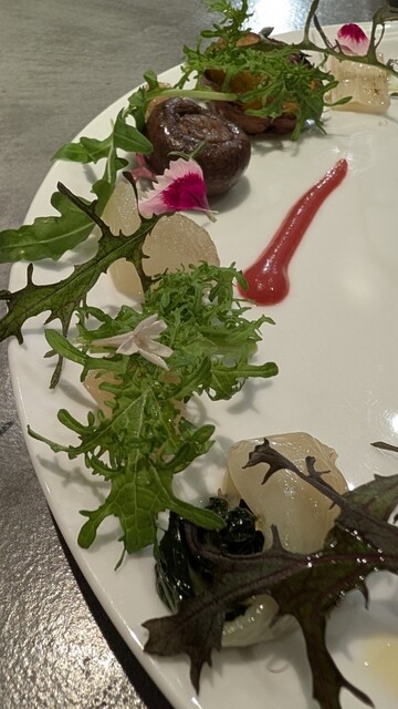 桑の実(マルベリー)を使ったソースに葱の甘みを足して