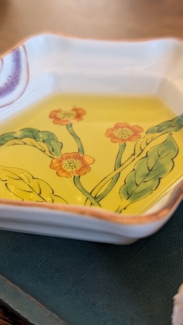 オリーブオイルは素敵な絵柄のお皿に