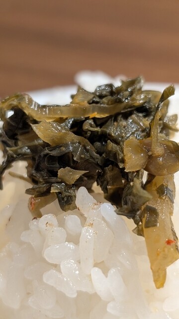この、綺麗な色はしそを刻んで混ぜてあるようです