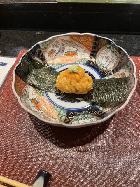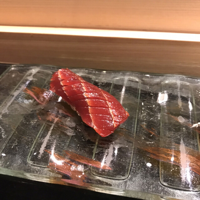海洋堂目当てで長浜に来た際に、偶然見つけてお伺いする様になり、かれこれ7回目の訪問です。お願いするのは、カウンター専用メニューのお任せ15巻。やはり、ワインといただきたいので、寿司懐石の様な構成よりも純粋にご主人の寿司を楽しめます。