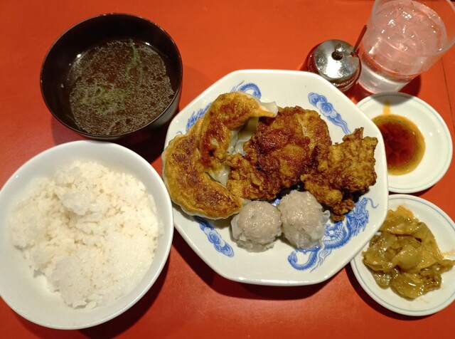 大龍軒定食は、餃子・焼売・唐揚など色々セット。今年のNo.1町中華です