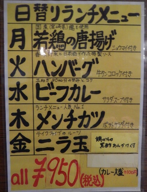 ランチメニューは、曜日替わり。月曜日は「唐揚げ定食」。ああ旨し