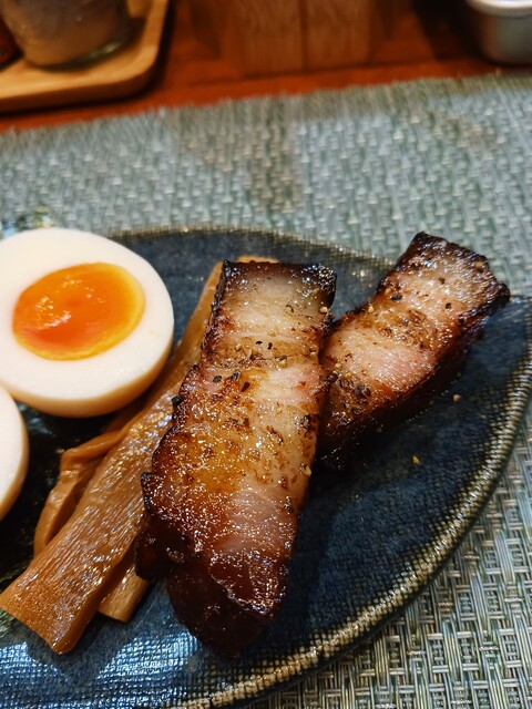 【味玉】:普通です。トッピングなら130円。プラス30円の価値があるか?残念だったのが提供された味玉は、すこし割れていた。個人的には味は変わらないので全く気にしませんが、他店では形が歪なら出さないところもあるのでこういった場合は130円の価値があるのかないのか??個人の判断ですね~。