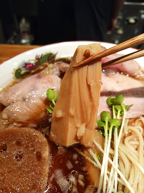 太めで短いメンマが2つ。柔らかく仕上がっていて少し繊維質感があるのが特徴。歯ごたえ合って存在感ありますね。