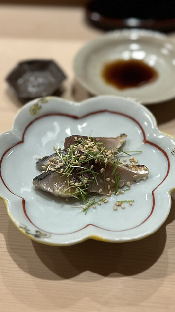 夏の2つの新子を堪能、中トロのような赤身の湯霜漬け