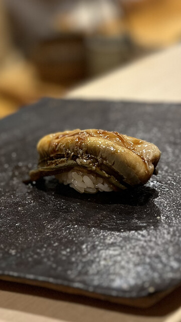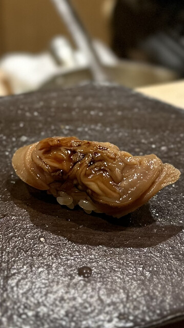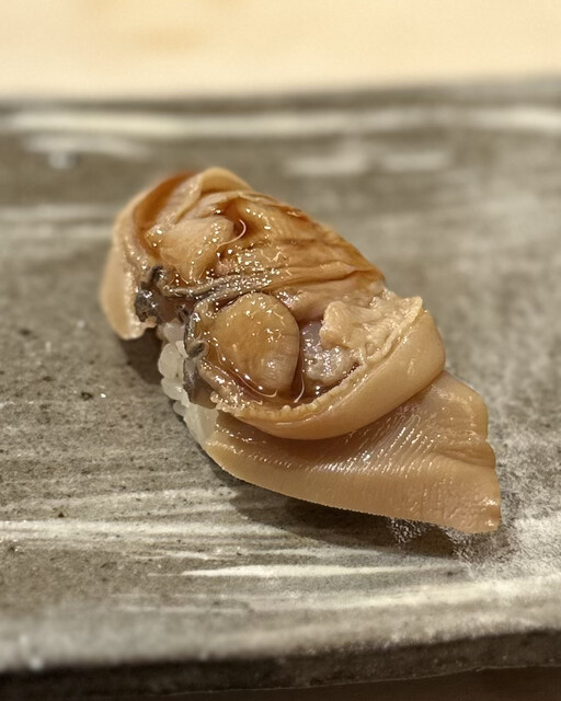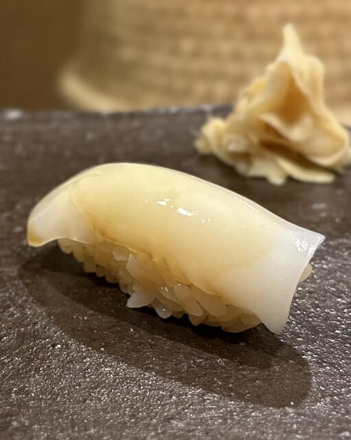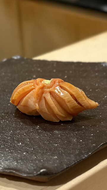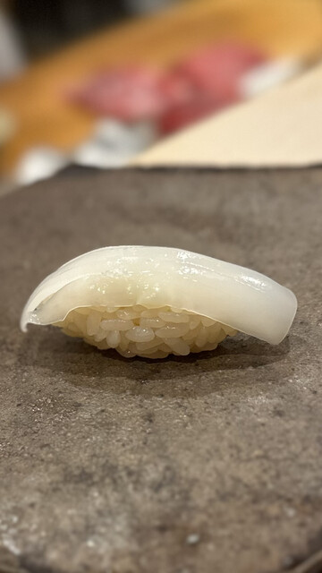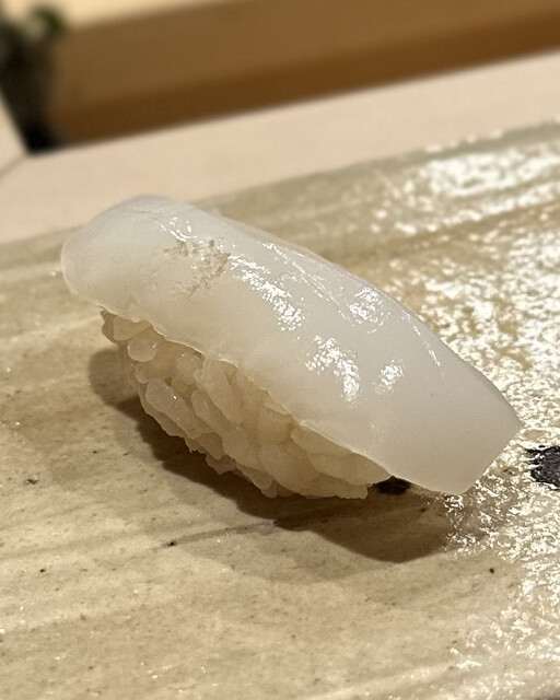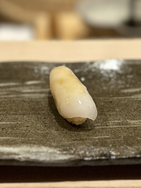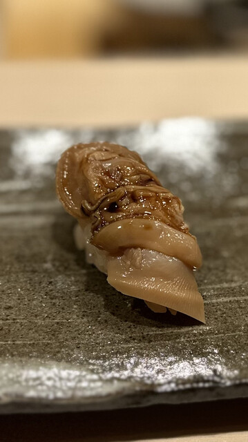 小肌の新子、スミイカの新子の新イカで夏を感じ、分厚い黒アワビで夏の鮨の醍醐味を足合わせて頂きました✨