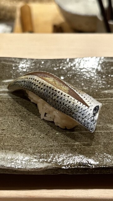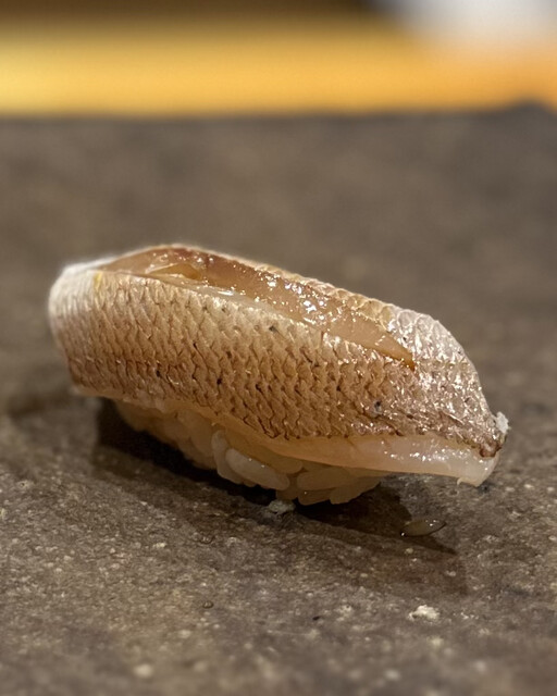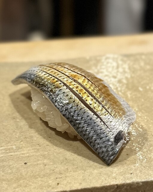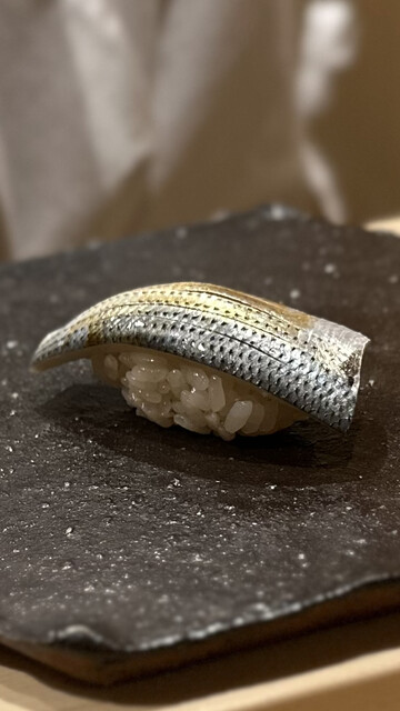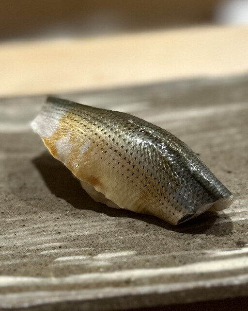 冬の光物細魚。綺麗な身質と淡泊な味わいの魚。鮨職人の仕事によりさまざまに変化する鮨種。