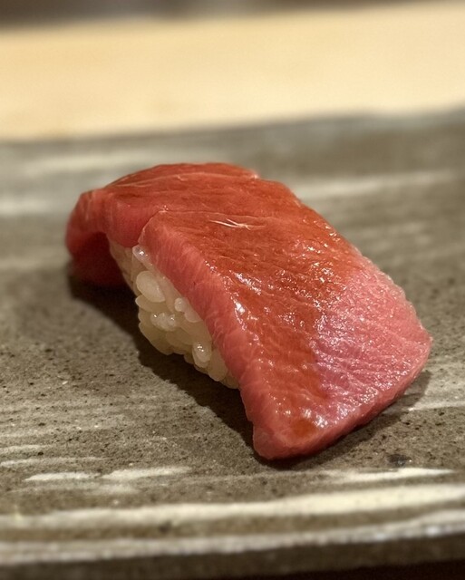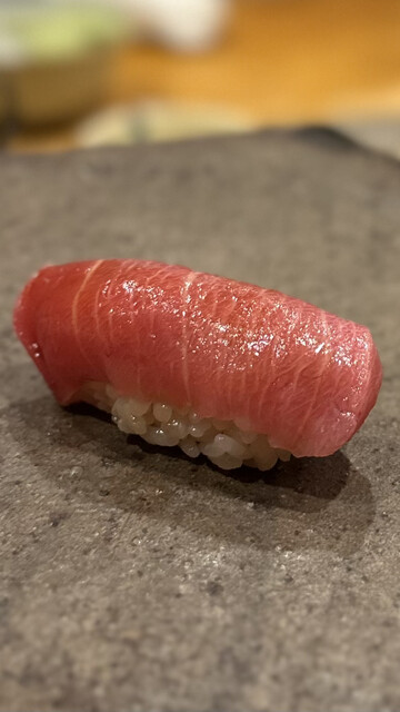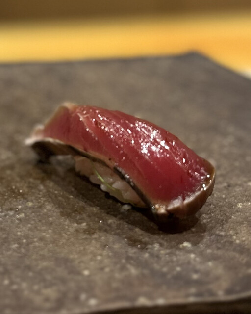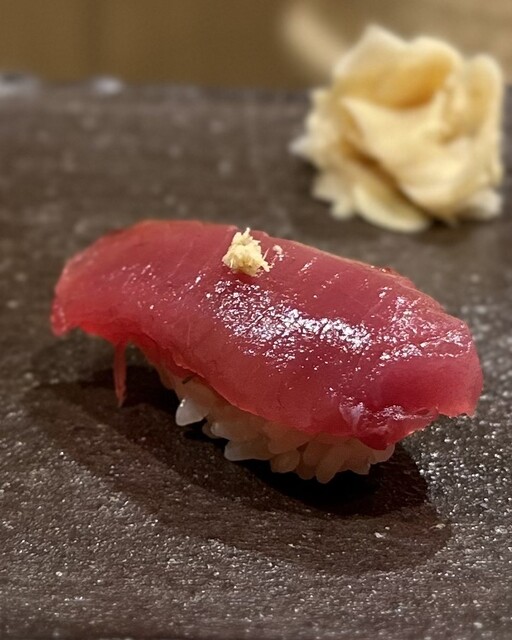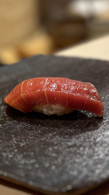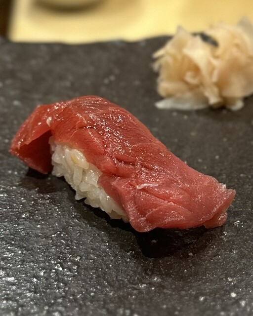 熟成された赤身は酸味はあまり感じず、中トロのようなネットリとした食感とマグロの薫香がたっぷり感じられる一貫