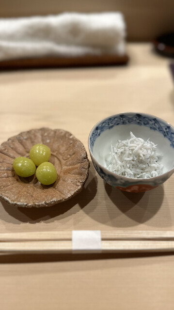夏の風物詩、「新子」。鮨のなかで最も重要な種、小鰭の子供です。これを食べると夏が来たなと感じる一貫。巡り合わせもありますが、今年の一貫目はこちら、鮨みやしたさんでした。
