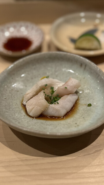 白甘鯛 握りでも一貫目を白甘鯛で。白甘鯛の繊細な脂でシャリの味が引き立ちこれから始まる握りの輪郭がしっかりと見える