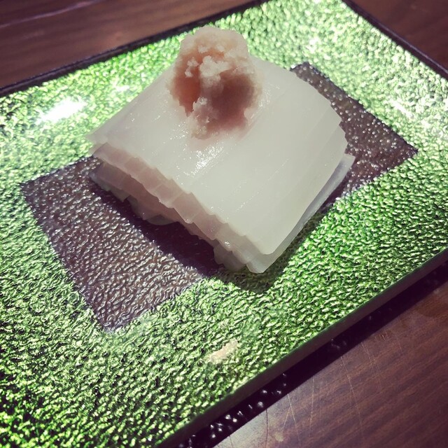 「道南の浜料理」とウェブサイトに書かれていたとおり、素材の味を活かした品が次々に出てくる。北海道に30年住んでいた私も食べたことのない品がいくつも並ぶのには驚いた。単に珍味が出てくるというだけでなく、大将の創作力によって、馴染の食材も全く新しい感覚で食べられる。