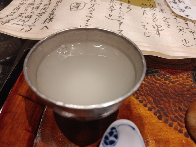 [2024年3月 訪問]上品な茶碗蒸し。半分ほど食べたら日本酒を注いで、また違った味わいを楽しみます。