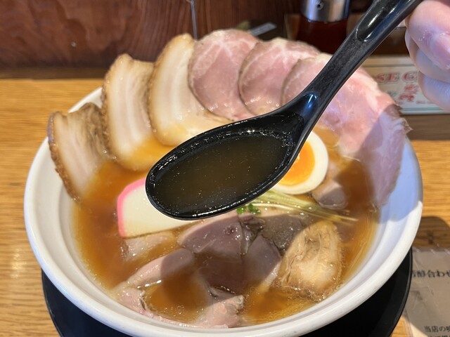 安定の旨さ、琥珀重ね醤油そば