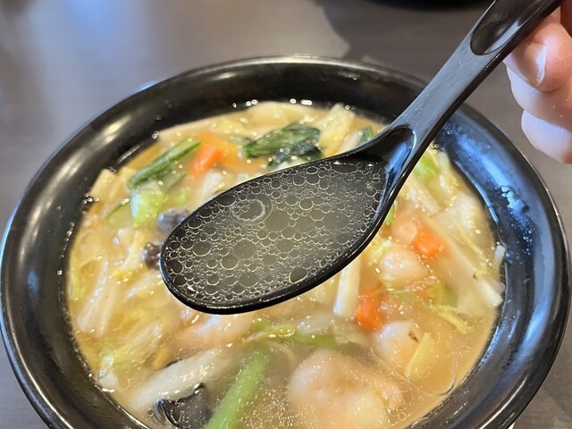 サラッとしたコクのあるスープに炒め煮されたいろんな種類の野菜がたっぷり入っていて、他では食べれない一杯