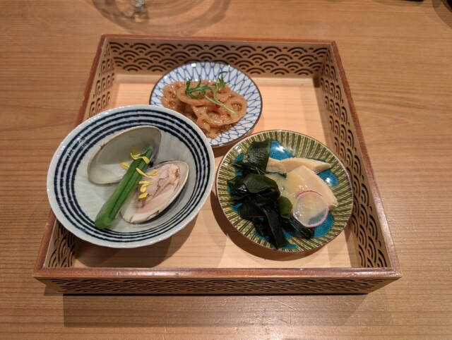 料理も、先付けから手の込んだもので、カウンター越しのオープンキッチンで力量が分かります。