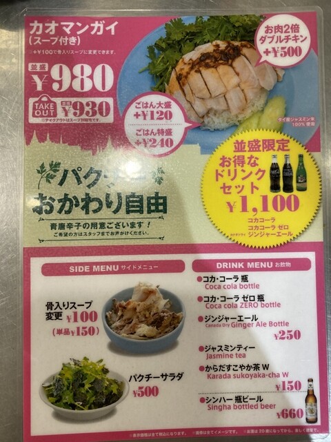 所用で渋谷に行く予定があったので、数日前からカオマンガイを食べようと決めてワクワクしながら当日を迎えた。カオマンガイと言えば「本場バンコクのゴーアン カオマンガイ プラトゥーナム(通称ピンクのカオマンガイ)」が有名で、私も7年半前にいただいたが、それに匹敵するほどの旨さであった!正直に言って、バンコクまでの旅費を考えると、ここでいい!いや!ここしかない!!!との検証結果となった!
