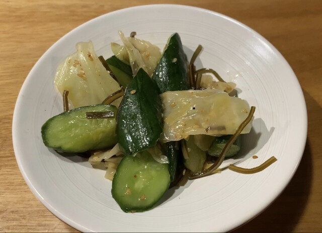 先ずは突き出しのお新香を突きながら、乾いた喉をビールで潤す。このお新香がバカうまで、もっと食べたいなあと思っていたら、お隣の席の方がホールの方に「おかわりください」とお願いしたのを見て、すかさず私もおかわりをお願いした。