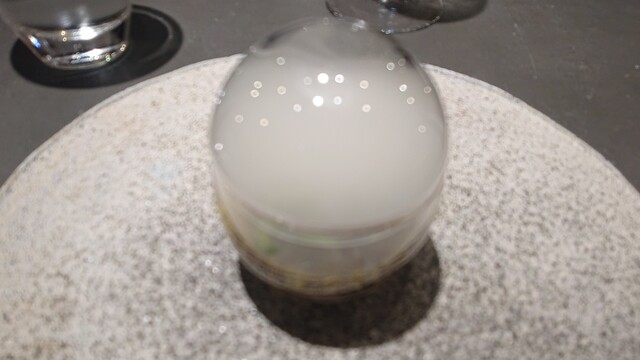 丸いガラスの器に入ってる。見た目も楽しませてくれるよね