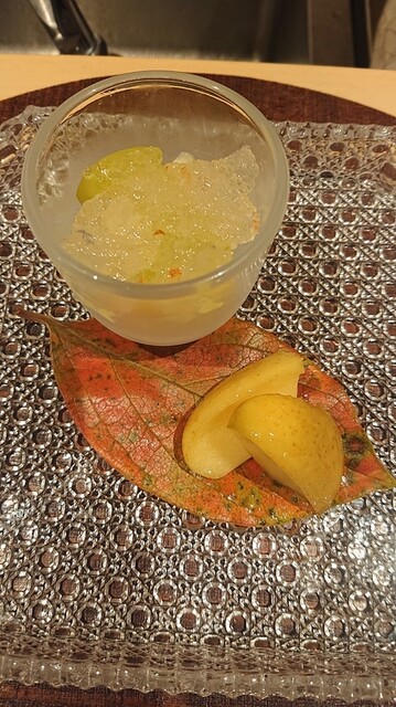 〇甘味・・・林檎の和三盆バター焼き・ラフランスとシャインマスカット