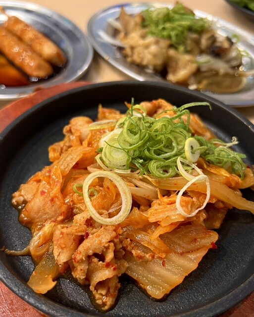 食欲かき立てる豚キムチは熱々の鉄板で提供