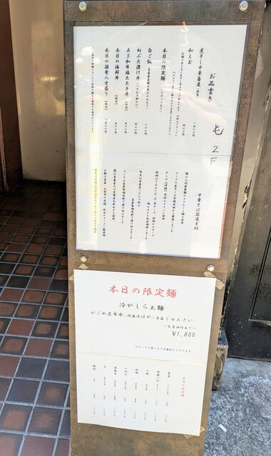 煮干しラーメンかなぁ〜と思いきや、限定は昆布だしの白醤油冷やしラーメン…暑いので「やったぁ!」でした。麺増しにするか…いや、アノ海鮮丼だ…結果、計2300円とちょいとお高目に。