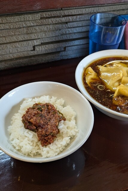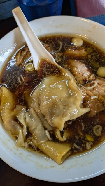 ワンタンの餡…中華の名店か?くらい、旨いワンタン特有の濃い味と良い風味。