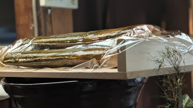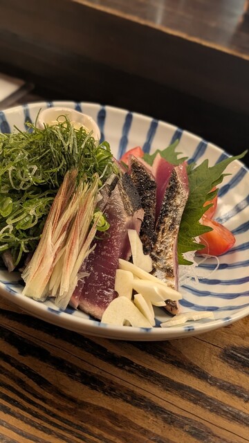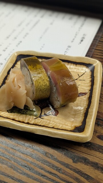 事前注文は「カツオのタタキ」と「さば寿司」を。さば寿司へ一切れずついけましたので。