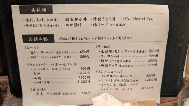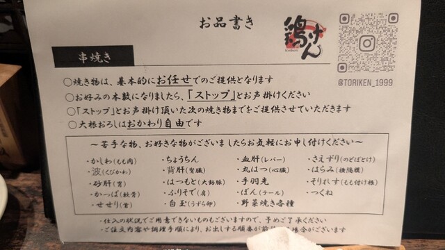 総額からドリンク価格を逆算すると串1本あたりの金額が凄いことになりますが、それはご愛敬