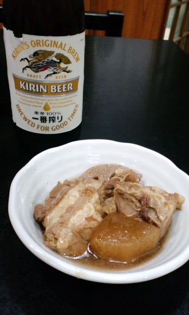 私も泡盛を飲みながらテレビを見ていましたら、煮付け(おかずのみ)が出てきました。