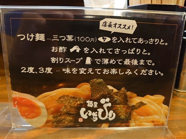 「つけ麺いちびり」より少しあっさりした味わいを縮れ麺の絡みの良さで味わいを調整してる感じでしょうか。バランスよく美味しいですね。