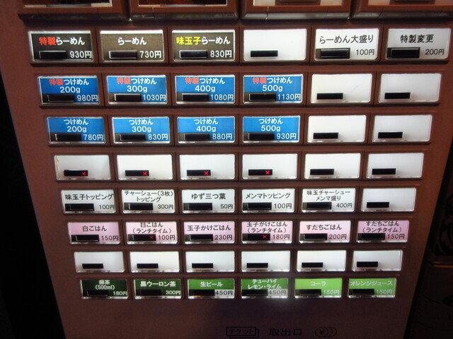 券売機で特製つけ麺の300gを購入しました。