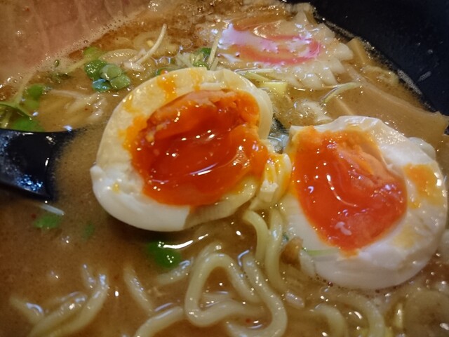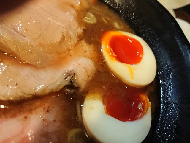黄身の赤い味玉は程よい半熟で濃厚な黄身の甘みが味わえます。