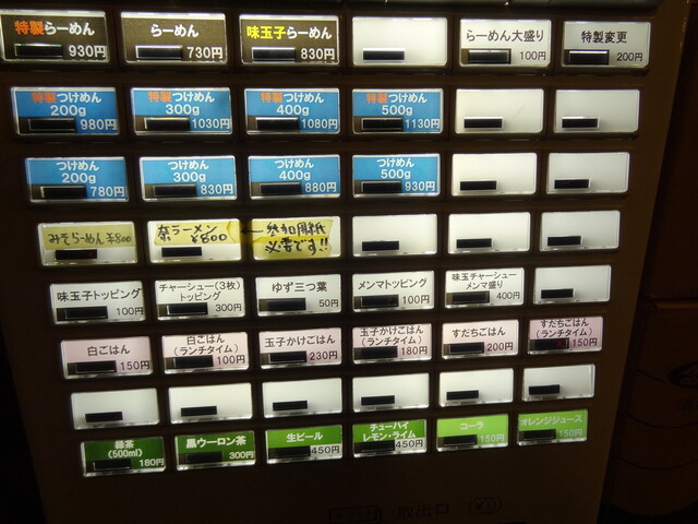 少し外待ちがありましたが少し待っての入店です(^-^)v入口の券売機で私は特製つけ麺を400g嫁さんは200gを購入して着席です。